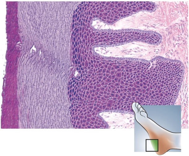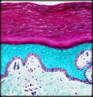 Name for the layer of the epidermis colored in bright blue in the diagram.