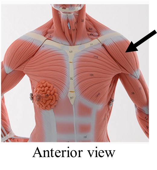 Name the bony landmark that the labeled muscle inserts into. (so, " of the ")