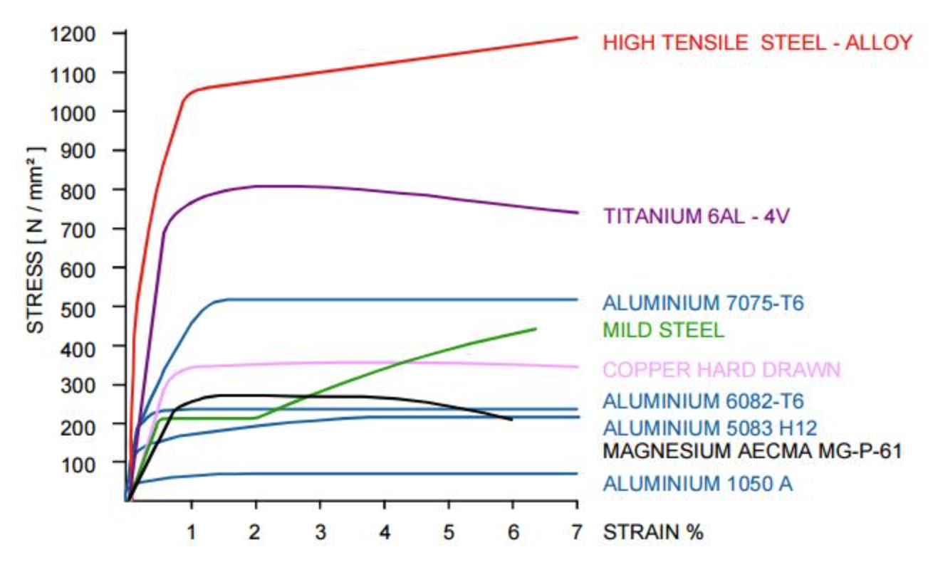 D'après le diagramme de contrainte-déformation, quelle est la limite ultime (élastique) du Titanium ?