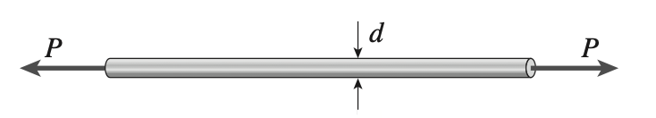 Une barre en aluminium (E = 70 GPa, v = 0.33) avec un diamètre de 20 mm est en traction par l'application d'une force axiale P, ce qui implique que son diamètre se réduit d'une valeur de 0.022mm.