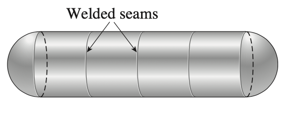 Une cuve cylindrique est assemblé avec partie cylindrique d'acier soudées entres elles (sur la circonférence). Le diamètre de la cuve est de 1.5 m, son épaisseur est de 20 mm et sa pression interne est de 2.0 MPa. La contrainte maximum au niveau des fermetures spheriques de la cuve est approximativement de: