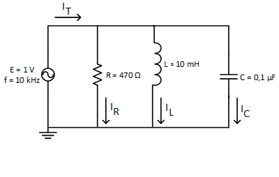 O valor da Corrente total (IT) no circuito à Frequência de Ressonância é, em mA (arredondando às centésimas de mA):