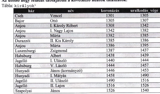 Hány rekorddal (adatsorral) tér vissza a következő lekérdezés?SELECT ház, COUNT(név) FROM királyok GROUP BY ház