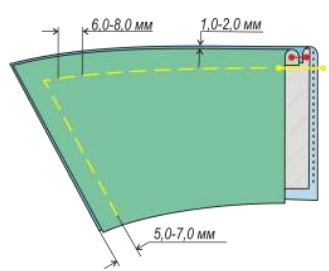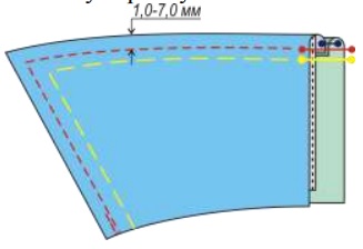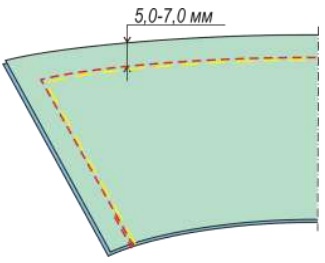 Вкажіть операції, які виконуються при з"єднанні накладної кишені з пілочкою у жіночому халаті