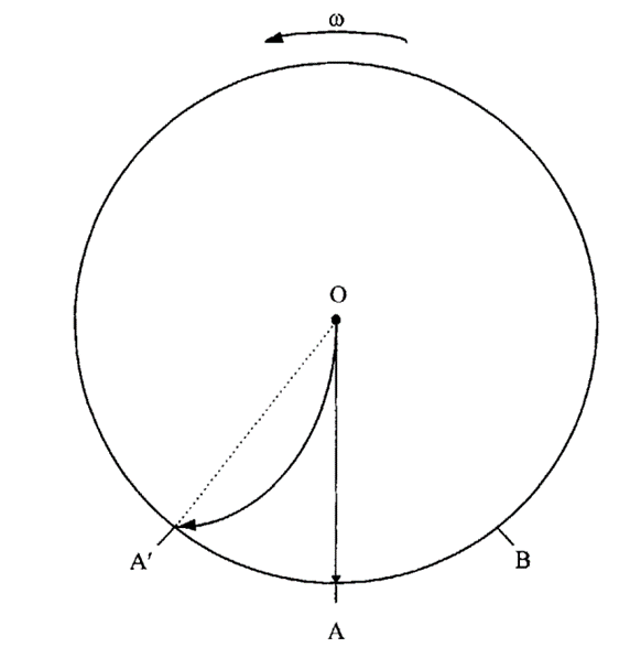 Як називається сила, яка діє на тіла Землі, наприклад коли частинка рухалася по прямій лінії, але до моменту досягнення краю диска A відхилилась до A', а A повернулася до B. Спостерігачу, який обертається разом з диском, тоді здаватиметься, що на частинку діє відхиляюча сила, яка відхиляє частинку від A до A'.