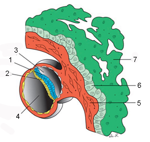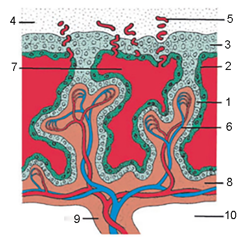 Розподіліть назви структур плаценти відповідно до номерів
