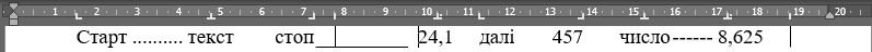 У яких позиціях встановлено символ табуляції "По левому краю"?