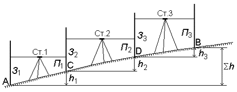 на місцевості, результатом яких є визначення перевищень між точками місцевості