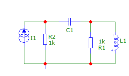 Kuri ekvivalentinė schema atspindi šią grandinę t=0+ laiko momentu po šaltinio prijungimo? (Talpumo ir induktyvumo elementai iki komutavimo nebuvo sukaupę energijos.)