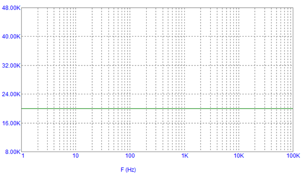 Kam bus lygus varžinio elemento, su varža R impedanso modulis, kai dažnis f=0 Hz?