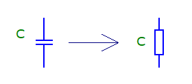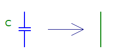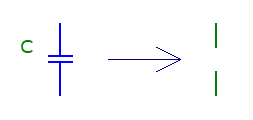 Kuris ekvivalentinis grandinės pakeitimas yra teisingas, kai f→0 Hz