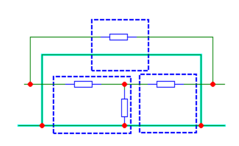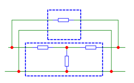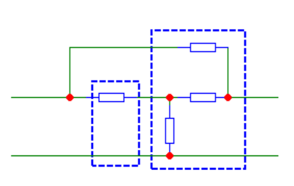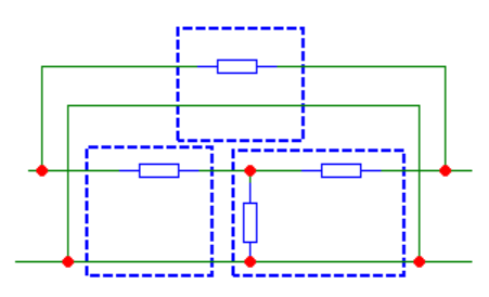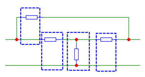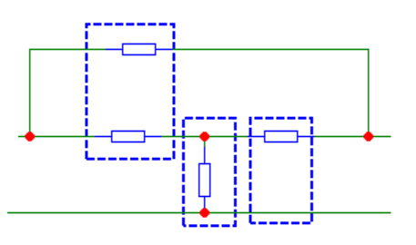 Kuris(-ie) šios grandinės išskaidymas(-ai) į keturpolius yra teisingas(-i)?