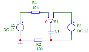 Kokia įtampa bus ant kondensatoriaus C1 t=∞ laiko momentu?