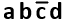Turime 4 kintamųjų (a, b, c, d) funkciją. Kaip vadiname užrašą ?