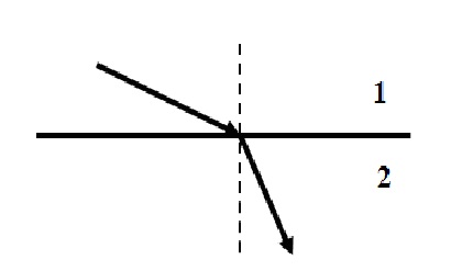 Šviesai pereinant iš 1 terpės į 2 terpę kaip parodyta paveiksle