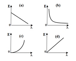 Kuriame iš žemiau pateiktų paveikslų teisingai pavaizduota fotono energijos priklausomybė nuo bangos ilgio