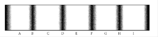 Paveiksle pavaizduotas interferencinis vaizdas, kurio centras yra taške F.