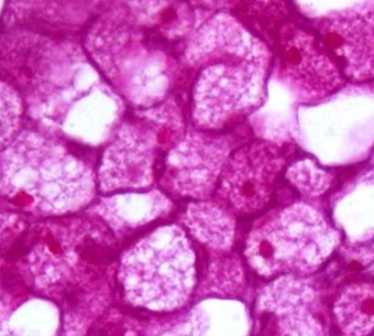 A 7-week-old infant is brought to the emergency department for severe hypothermia. Such a small child does not have enough muscle mass to produce heat through muscle tremors, and at the same time, his body has a large surface area causing easier heat loss. Newborns and infants have a special way of producing heat through non-shivering thermogenesis using brown adipose tissue. What does the basic structure of this tissue look like?