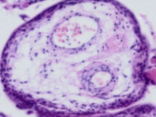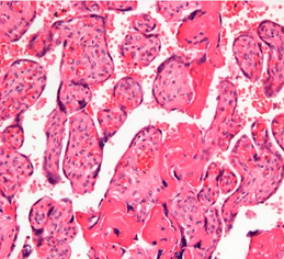 While creating new slides for students, the histology laboratory technician mixed up the slides with the placenta. However, half of the placenta samples are from the first trimester of pregnancy, and the other part is from the third trimester. Which characteristics will help the laboratory technician to distinguish the given samples from each other?