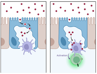 A 19-year-old female patient suffers from a variety of non-specific problems such as fatigue, weakness, malaise, abdominal pain, occasional diarrhoea and vomiting. In addition, she is very pale and has lost weight since her last check-up with the doctor. A bland non-specific rash is present on her skin. In the blood count that is done, only mild anemia is present. As these symptoms have been present in the patient for a longer period of time, further investigations are made to find possible causes. One possibility that is eventually confirmed both laboratory and histologically is celiac disease. The disease is a genetic disorder of mucosal immunity. It reacts abnormally to gluten and prolamins found in wheat and other cereals. The damage of the intestinal mucosa that occurs in patients when gluten is present in the intestine is caused by T-lymphocytes. The result is mucosal atrophy with impaired absorption of nutrients. Antigen presenting cells play an important role in the activation of T-lymphocytes and transmit these antigens to T-lymphocytes. These cells receive the antigen (here gluten) from the lumen of the intestine by transcytosis via a special type of intestinal epithelial cells located above the lymphoid tissue clusters in the intestinal mucosa (typically Peyer's patches). How do we call these cells?