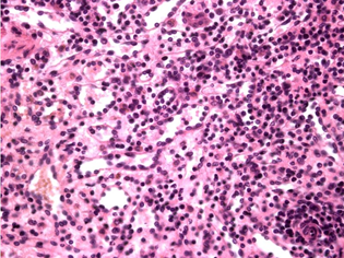 A 26-year-old woman come to the doctor because of enlarged lymph nodes in the neck and axilla area, in addition, she suffers from fatigue, night sweats, and fever. The doctor will perform blood tests that prove acute toxoplasmosis infection. If an enlarged lymph node were examined histologically, what would we find?