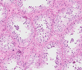A 35-year-old man notices a lump in the front of his testicle. He says the lump is not painful. Biopsy reveals that it is a malignant testicular tumour. The tumour is removed, including clear margins that contain normal testicular tissue. Which of the following will be present in the sample taken?