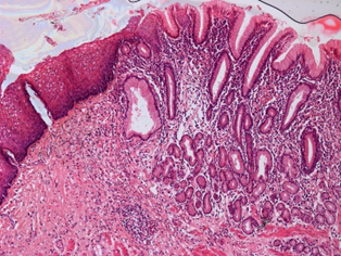 A 63-year-old man comes to the physician for a follow-up evaluation of chronic, retrosternal chest pain. The pain is worse at night and after heavy meals. He has taken medicines to reduce the production of stomach acids for several months without any relief from his symptoms. An upper endoscopy shows changes in the distal esophagus and in the area above the gastro-oesophageal junction. A biopsy of the distal esophagus shows simple columnar epithelium with goblet cells, which does not occur normally here. Which type of epithelium should normally occur here?