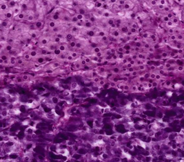 A 37-year-old woman comes to the physician for evaluation of unintentional weight gain (5.5 kg in 2 weeks) and irregular menstrual cycles over the past 3 months. She does not take any medications. Her blood pressure is 155/85 mmHg. Elevated serum cortisol level is found. Which adrenal layer is likely to contain an excessive amount of this hormone?