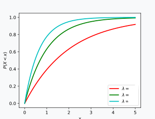 Consider the figure below. It shows three cumulative distributions functions for the exponential distribution with various parameters: