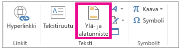 Millä valintanauhan (ribbon) valinnalla pääset ylä- ja alatunnisteen muokkaamisnäkymän valintaan?