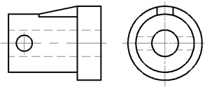 Деталь складається з двох циліндрів, які мають спільну вісь. Малий верхній циліндр ззовні має два плоских симетричних зрізи. За віссю деталі просвердлений наскрізний вертикальний отвір.