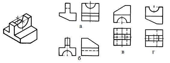 Який із розрізів відповідає формі зображеної деталі і правилам виконання?