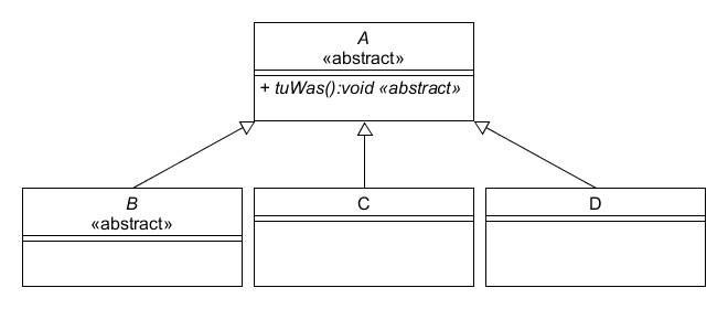 Aufgabe: Welche der Klassen A-D implementieren die Methode tuWas() ?