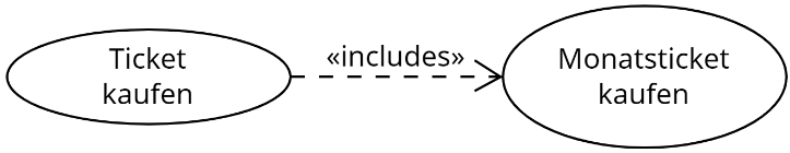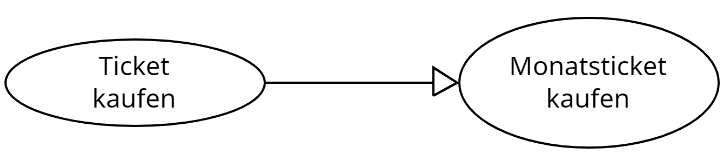 Aufgabe: Wo ist die Beziehung zwischen den Use Cases "Ticket kaufen" und "Monatsticket kaufen" richtig dargestellt?