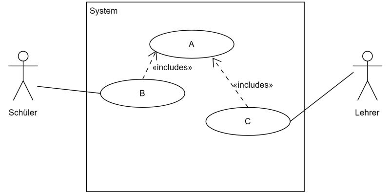 Aufgabe: Das dargestellte Anwendungsfalldiagramm zeigt den Anwendungsfall einer Klassenarbeit. Orden Sie die richtigen Anwendungsfälle zu.