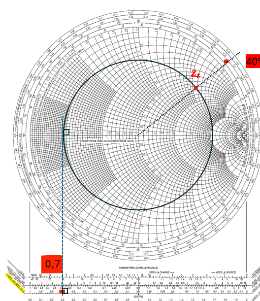 On représente le point représentatif de l'impédance réduite sur l'abaque.