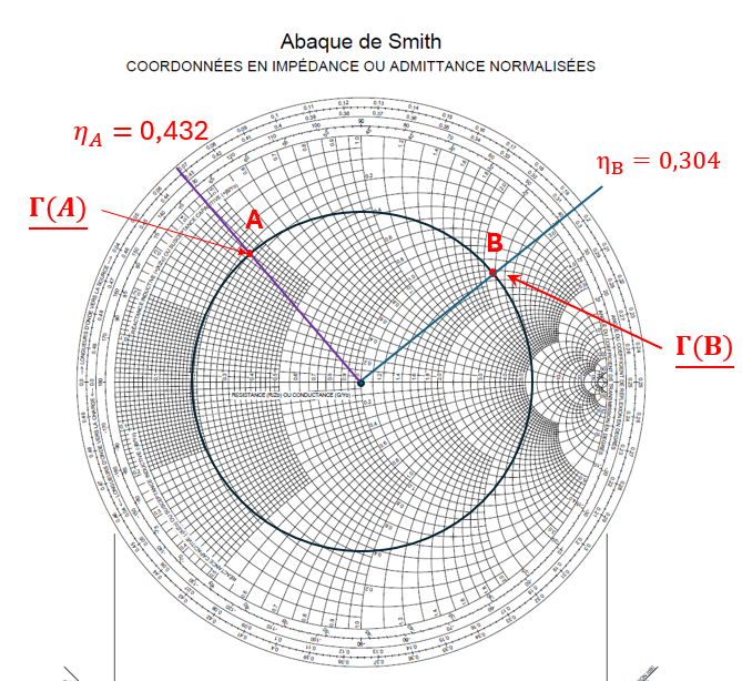 The representative point of the normalized impedance is plotted on the Smith chart. We can deduce thatConsider a lossless transmission line with characteristic impedance connected to a sinusoidal voltage generator and a load .