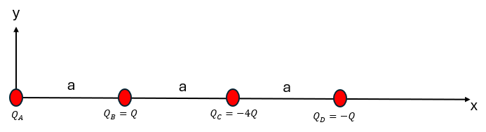 On considère 4 charges ponctuelles sur l'axe séparées par une distance a.