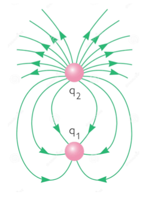 On considère deux charges ponctuelles et séparées par une distance r (figure ci-dessous)
