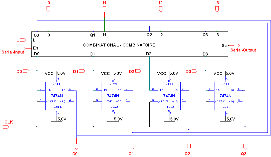 Il s’agit de concevoir un registre à chargement série-parallèle de 4 bits présentant les E/S suivantes :