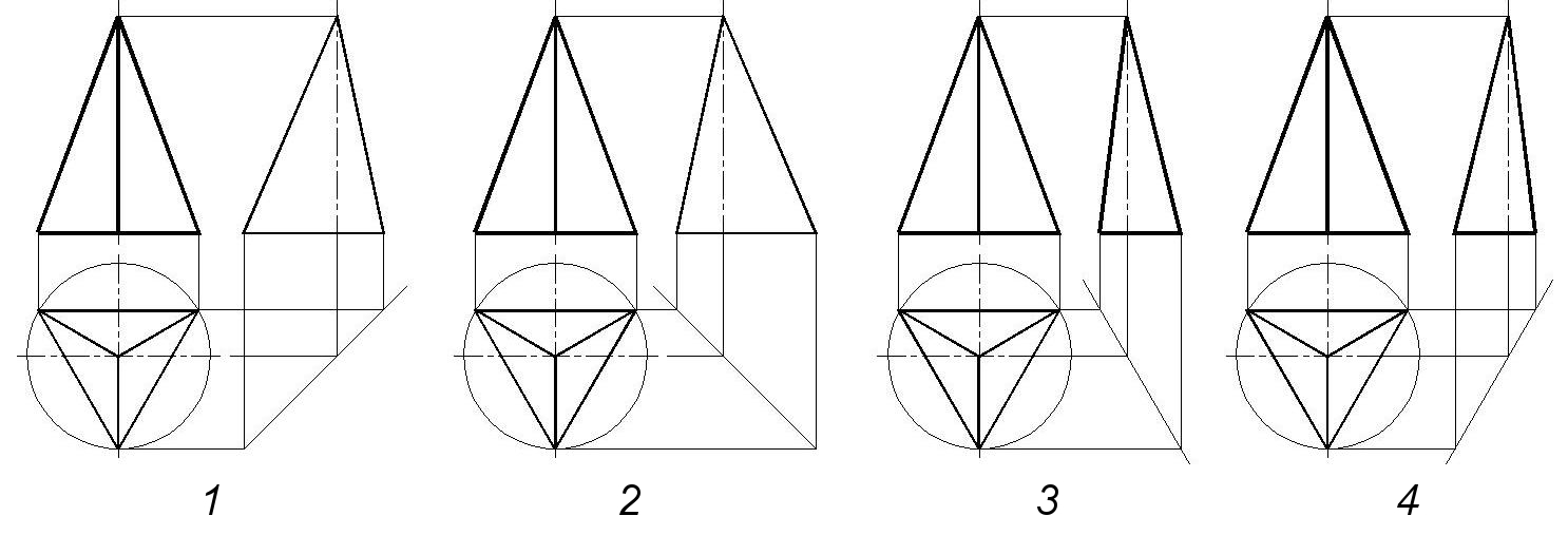 На якому рисунку правильно побудована профільна проекція геометричного тіла? |