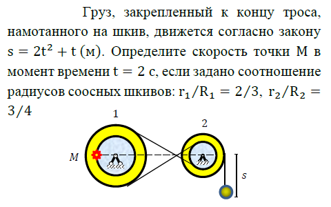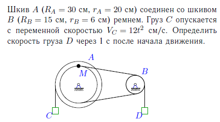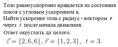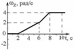 Диск радиуса R начинает вращаться из состояния покоя в горизонтальной плоскости вокруг оси Z, проходящей перпендикулярно его плоскости через его центр. Зависимость проекции угловой скорости от времени показана на графике.