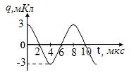 На рисунке приведен график зависимости заряда q от времени t в идеальном колебательном контуре. Циклическая частота колебаний равна … рад/с.