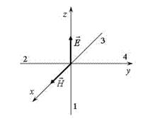 На рисунке показана ориентация векторов напряженности электрического () и магнитного () полей в электромагнитной волне. Вектор плотности потока энергии электромагнитного поля ориентирован в направлении
