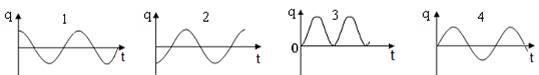 На рисунке приведен график зависимости силы тока i от времени t в идеальном закрытом колебательном контуре. Процесс изменения заряда на обкладках конденсатора показан правильно на графике номер
