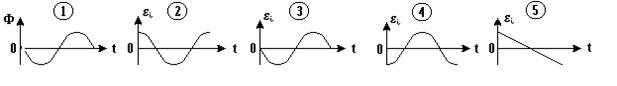 Магнитный поток F, сцепленный с проводящим контуром, изменяется со временем так, как показано на рисунке под номером 1. График, соответствующий зависимости от времени ЭДС индукции ei, возникающей в контуре, представлен на рисунке номер