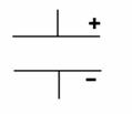 Ток смещения в плоском конденсаторе направлен … (см. рисунок), если модуль вектора  напряженности электрического поля между обкладками конденсатора возрастает.