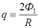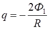 Замкнутый проводящий контур сопротивлением R находится в магнитном поле. Магнитный поток, пронизывающий контур равен Ф1. При изменении направления вектора магнитной индукции  на противоположное, через катушку протекает заряд q. Верное выражение для заряда соответствует формуле