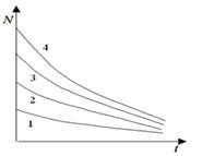 На графике изображены зависимости количества не распавшихся ядер от времени для различных радиоактивных препаратов. Препарату с наименьшей активностью в начальный момент времени соответствует кривая с номером …