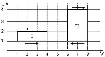 На (Р,V) – диаграмме изображены два циклических процесса. Отношение работ, совершенных газом в каждом цикле АIII, равно…